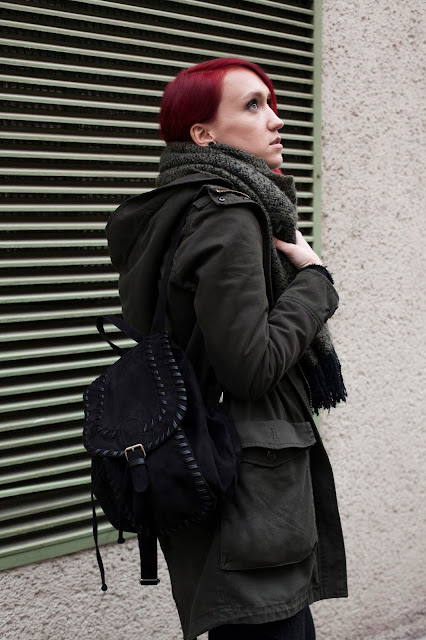 Other items: scarf is from H&M, trousers are from H&M, denim jacket is from H&M, a kind of "woollen" vest also from H&M, rucksack also from H&M and shoes are from United Colours of Benetton.